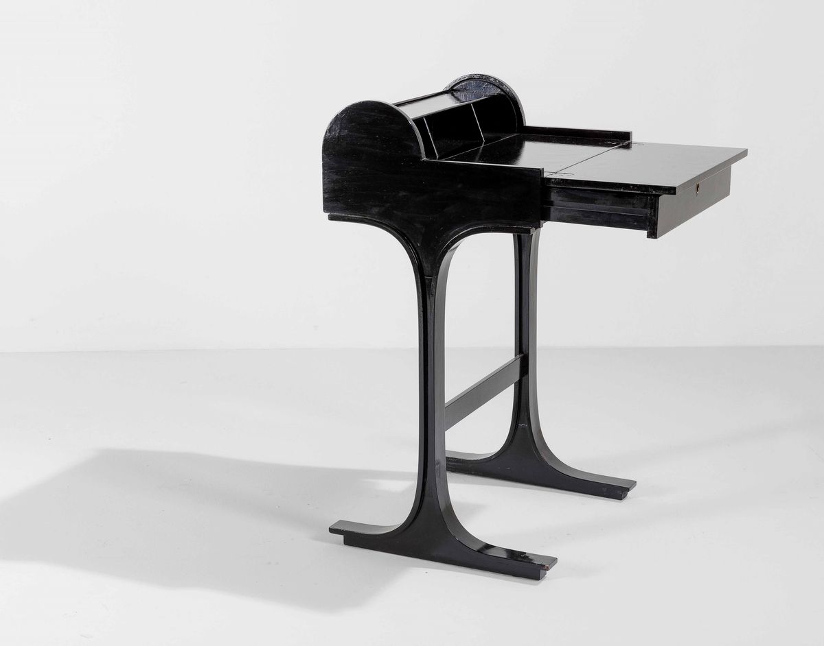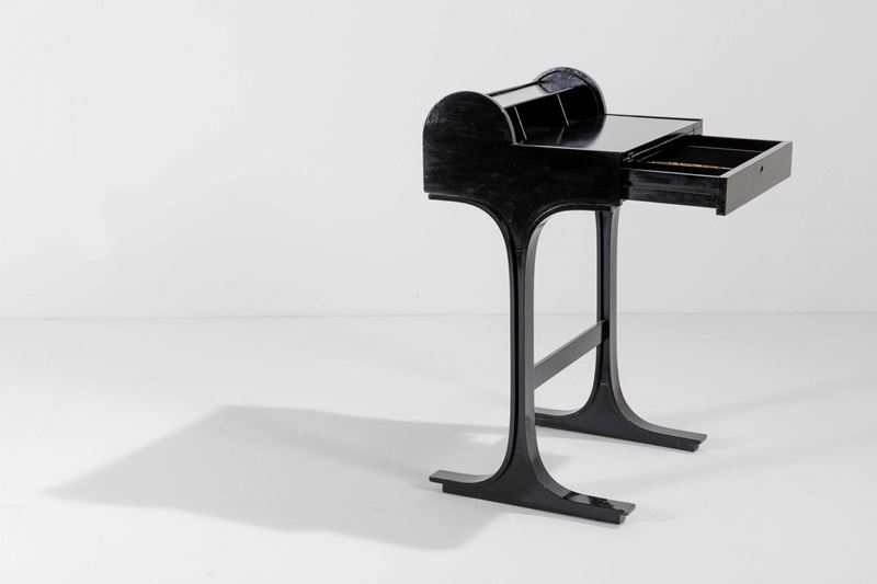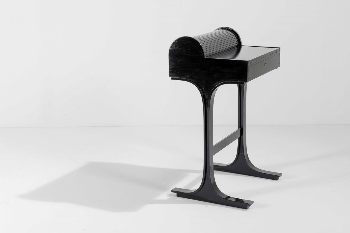 Scrittoio con movimento a serrandina con struttura in legno e legno laccato.
