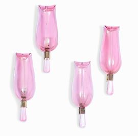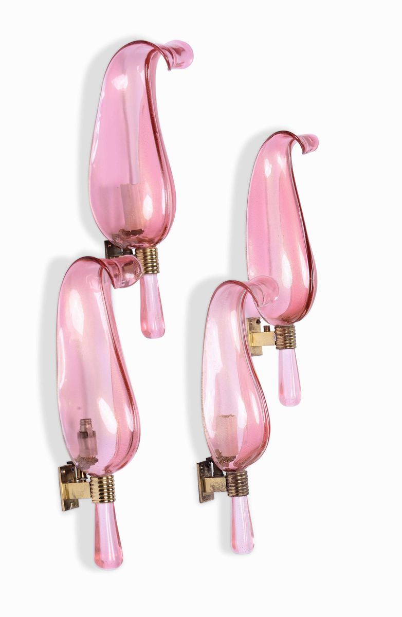Quattro lampade da parete con diffusore in vetro di Murano colorato e struttura in ottone.