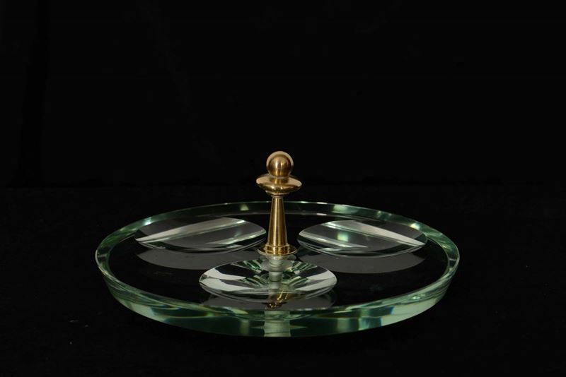 Svuotatasche in cristallo molato e sagomanto di forte spessore, particolari in ottone