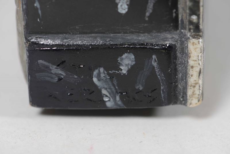 Tavolo basso con struttura in metallo laccato e piano in ceramica smaltata.