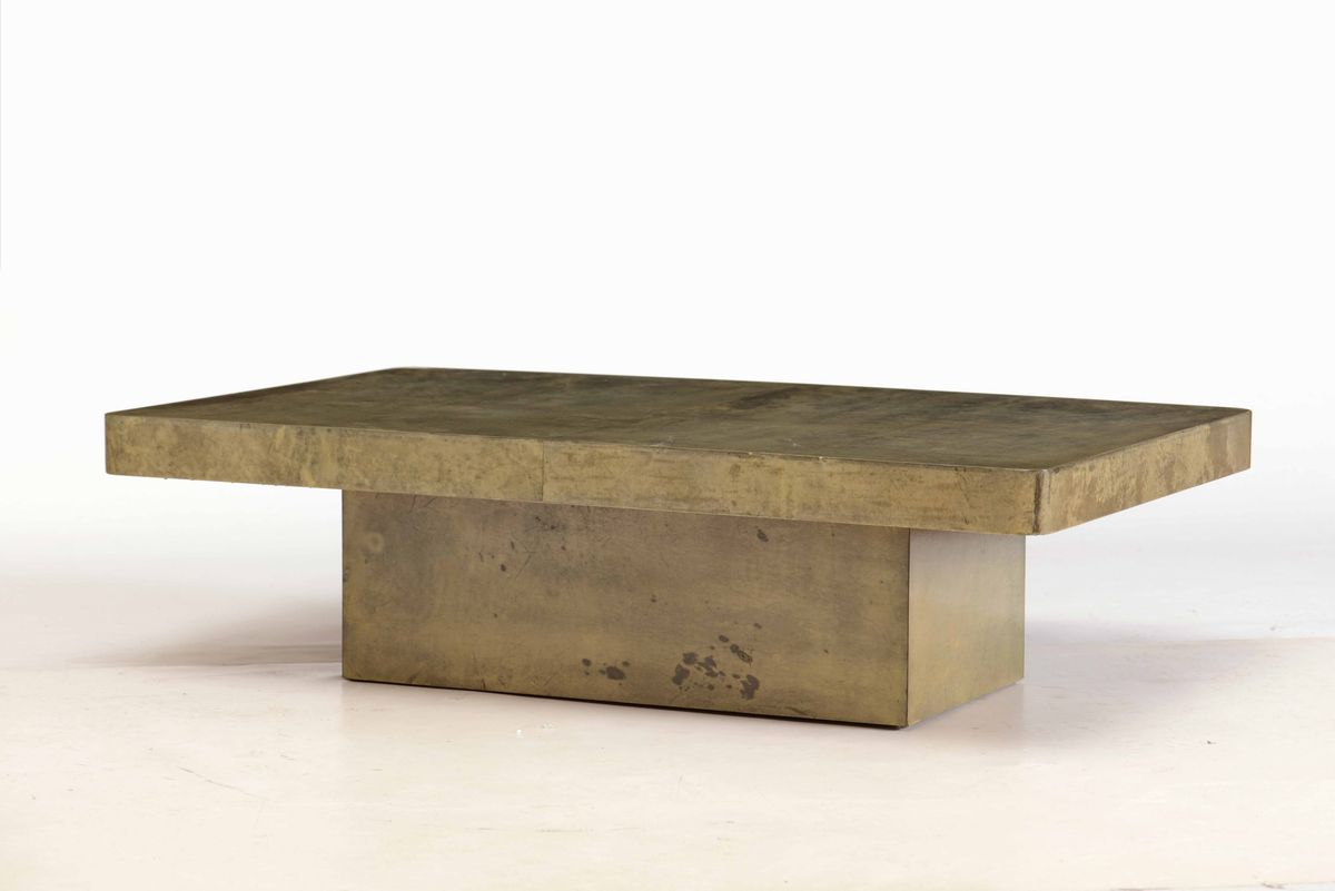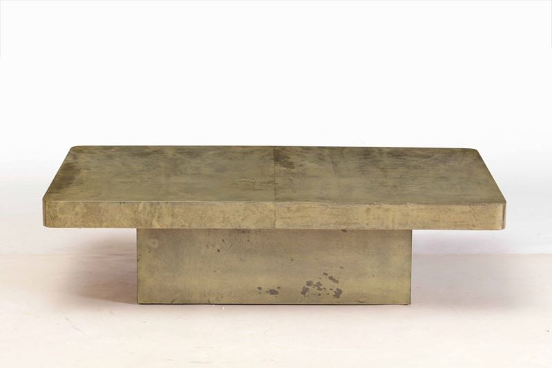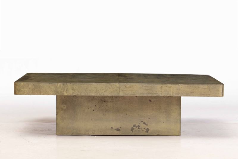Tavolo basso con struttura in legno rivestito di pergamena.