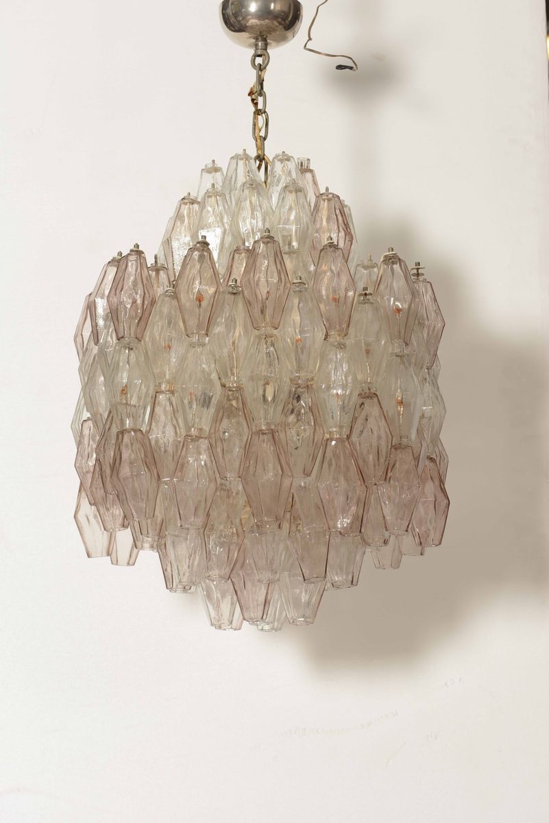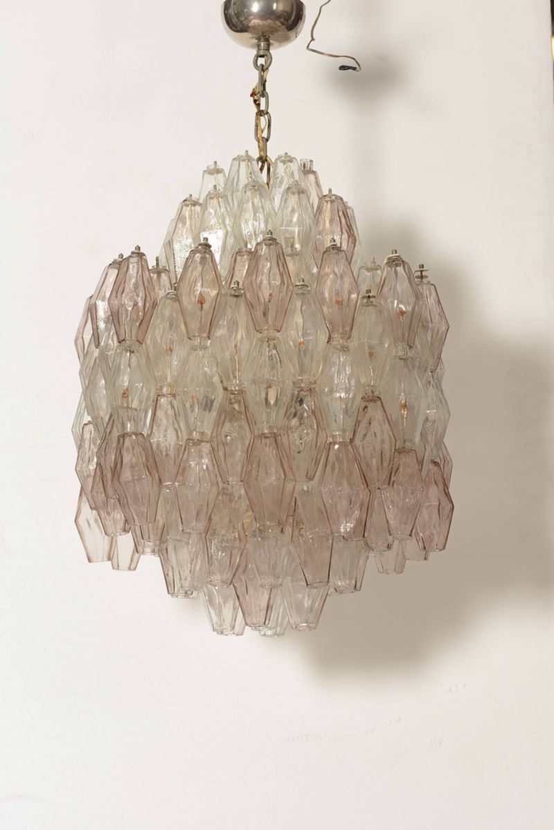 Lampada a sospensione con struttura in metallo ed elementi diffusori in vetro di Murano della serie Poliedri.