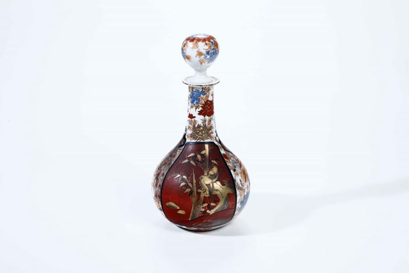 Bottiglia in porcellana a decoro Imari. Giappone, XIX secolo