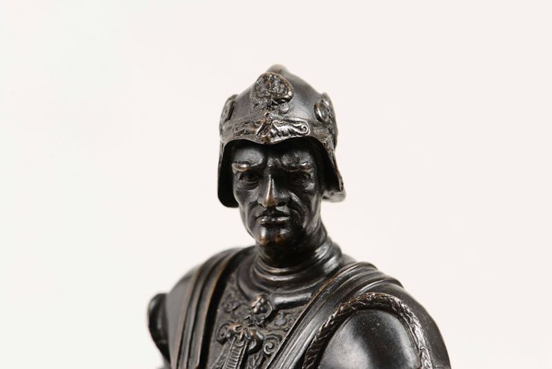 Dal celebre monumento equestre eseguito da Andrea del Verrocchio per il Campo San Zanipolo a Venezia tra il 1480 e il 1488. Raffigura il condottiero Bartolomeo Colleoni (1395/1400-1475), uno dei più intraprendenti capitani di ventura della Repubblica di Venezia del XV secolo.