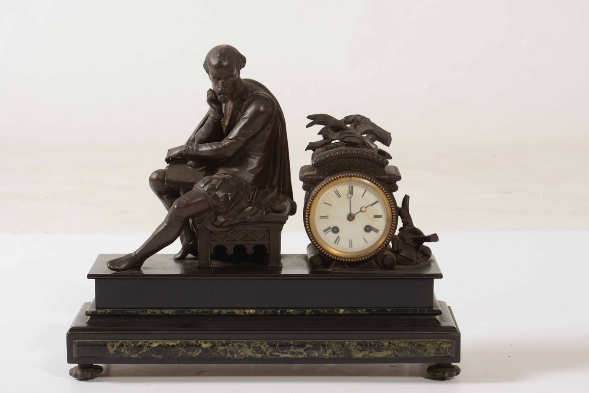 Pendola da tavolo in metallo e marmo verde, XX secolo