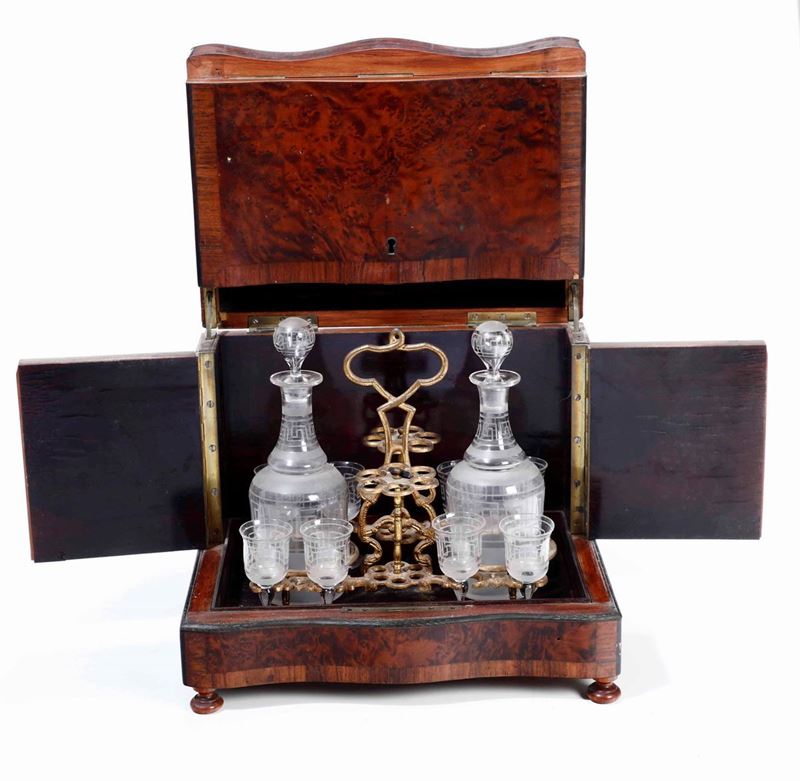 Servizio da liquore in cristallo entro custodia in legno lastronato