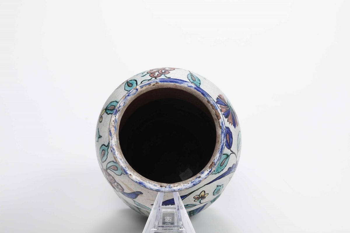 Maiolica. Altezza cm 37. Conservazione: insignificanti sbeccature ai bordi; craquelures