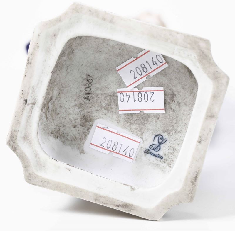 Porcellana. Marca: “PS” Dresden, in blu. Altezza cm 28. Ottimo stato di conservazione