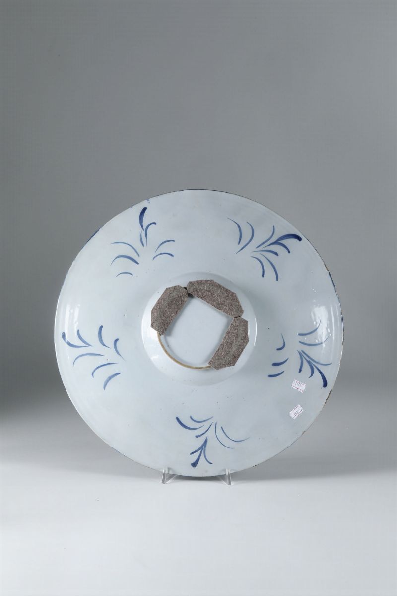 Maiolica a gran fuoco in monocromia blu di cobalto. Diametro cm 46,5. Estesi restauri