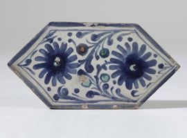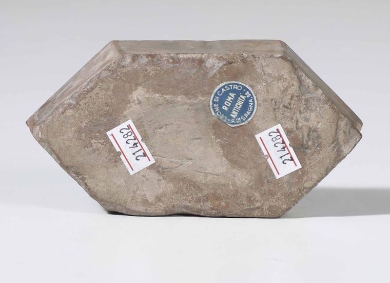 Maiolica. Dimensioni: cm 14,5 x 7,5. Conservazione: ottima; qualche minima sbeccatura. Provenienza: Antichità Leone Di Castro, Roma