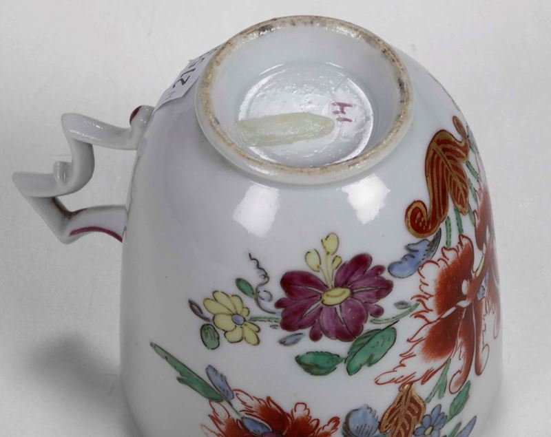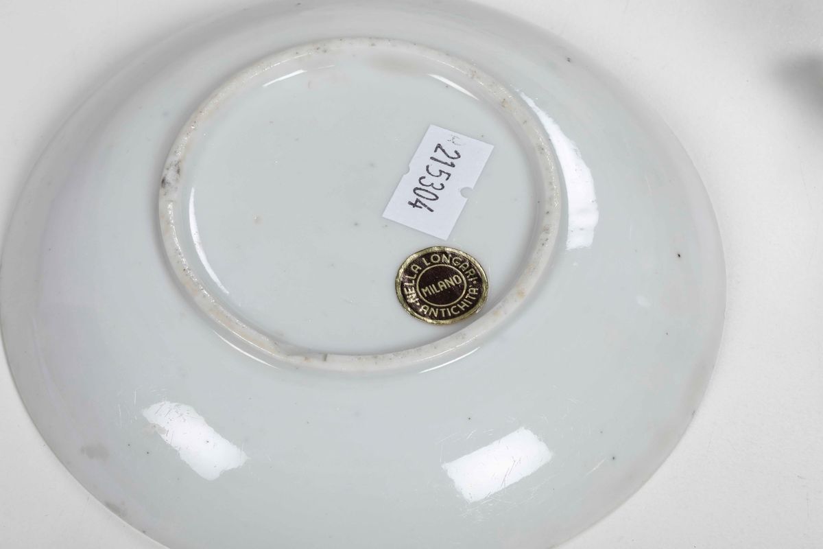 Piattino ovale, tazza e un piattino Doccia, Manifattura Ginori, 1770 circa