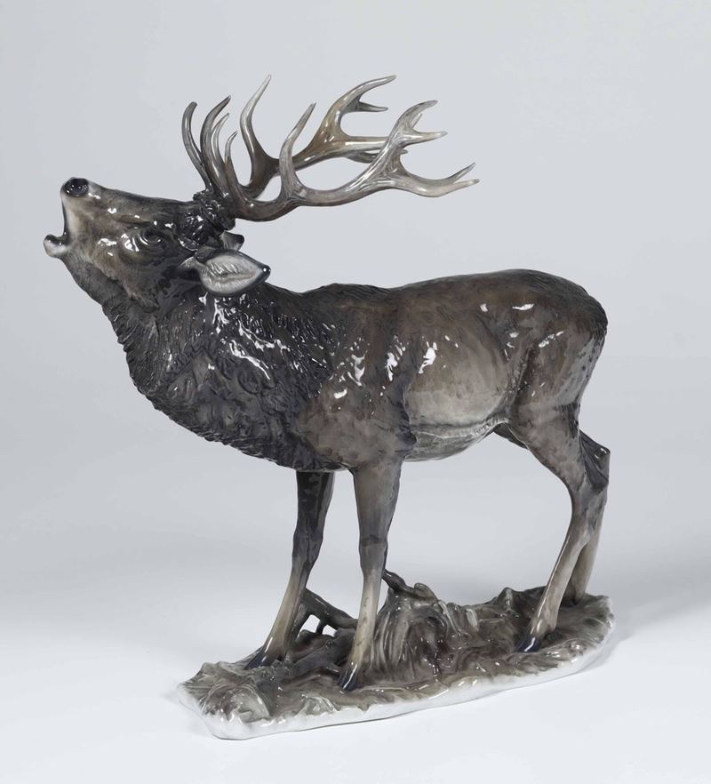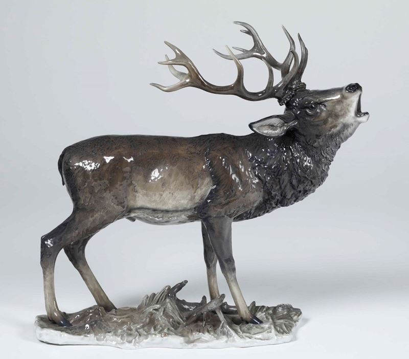 Scultura di cervo che bramisce Germania, Selb (Baviera), Manifattura Rosenthal, verso la metà del XX secolo Modello di Fritz [..]