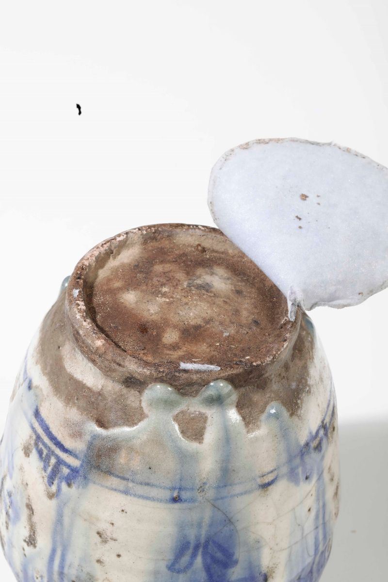 Ceramica silicea. Altezza cm 17 circa. Conservazione: ottima; qualche craquelure