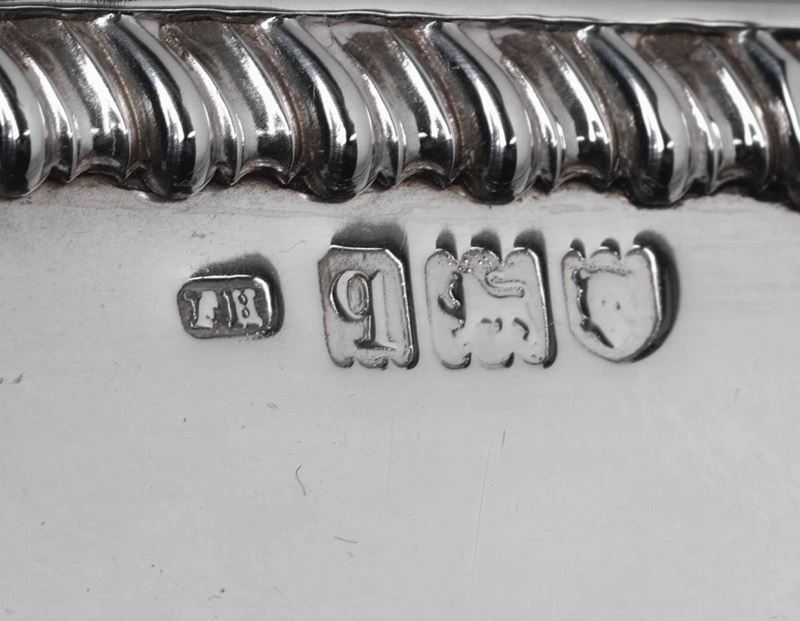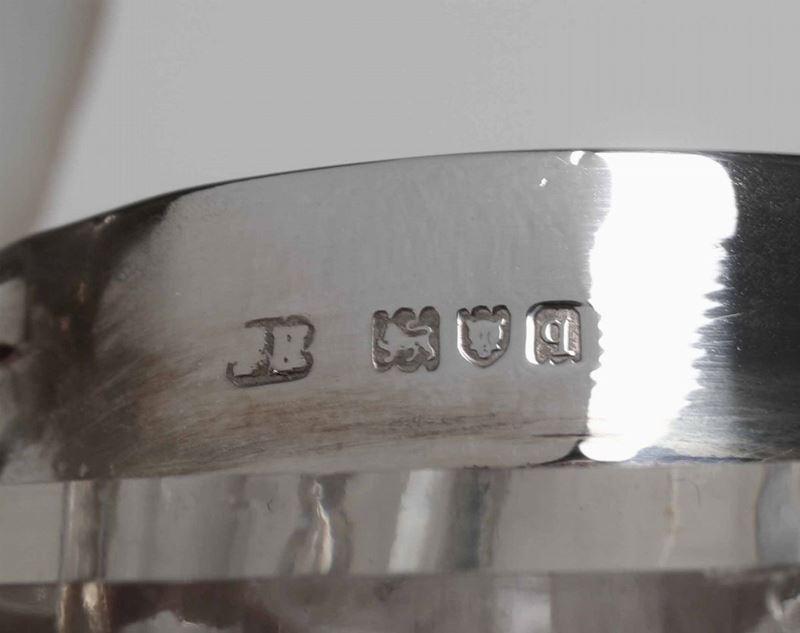 Calamaio in argento e cristallo molato. Marchi della città di Londra 1911 e dell’argentiere (non identificato)