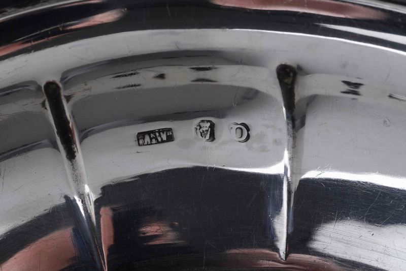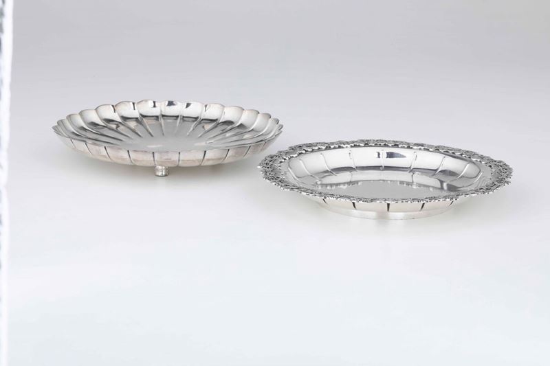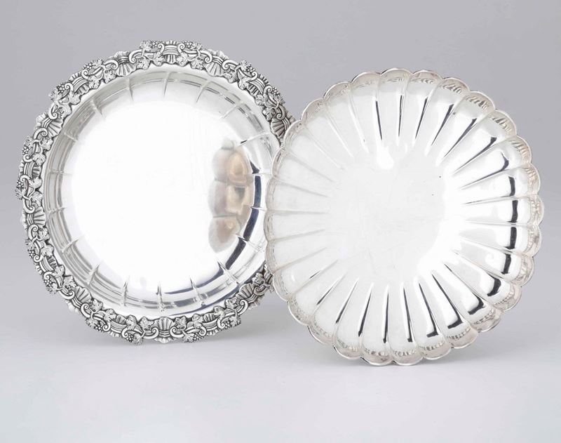 Due vassoietti circolari in argento; uno Giappone XX secolo e uno Irlanda XX secolo, argentiere Mappin & Webb