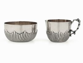 Lattiera e zuccheriera in argento fuso e cesellato. Germania, Darmstad (?) XIX-XX secolo