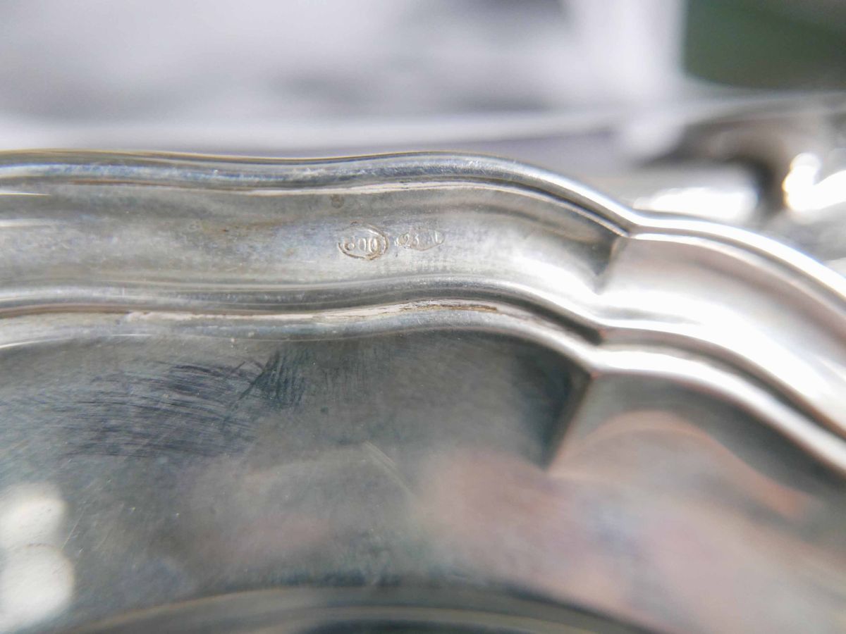 Tre piattini in argento di modelli differenti. Italia XX secolo