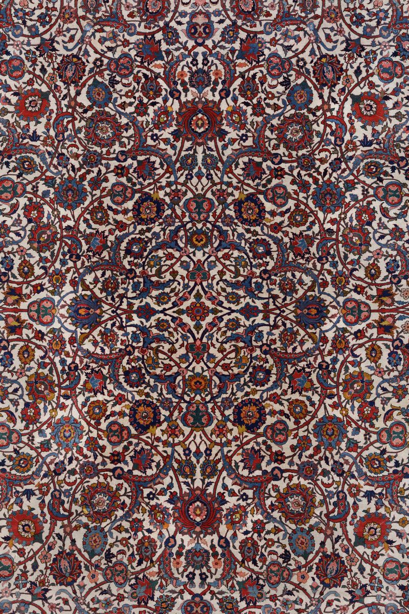 campo chiaro con volute di fiori, boccioli e foglie, cm 366x267
