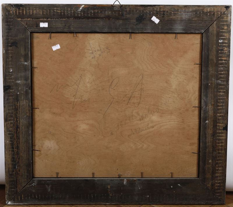 coppia di dipinti ad olio su compensato, cm 40x46 e cm 41x47