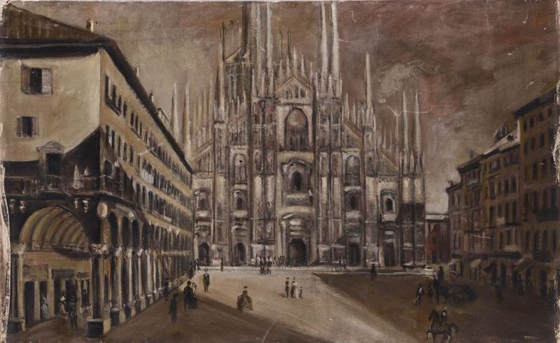 Pittore del XX secolo Quattro dipinti con vedute di Milano