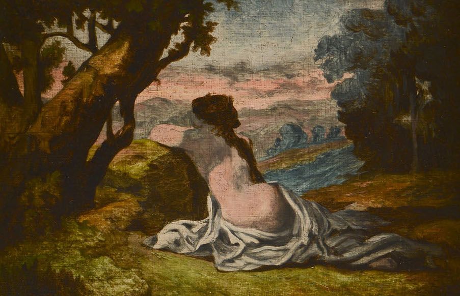 Scuola francese del XIX secolo Paesaggio con figura femminile