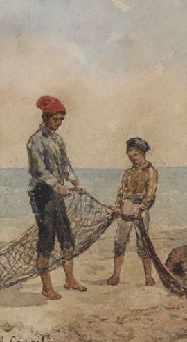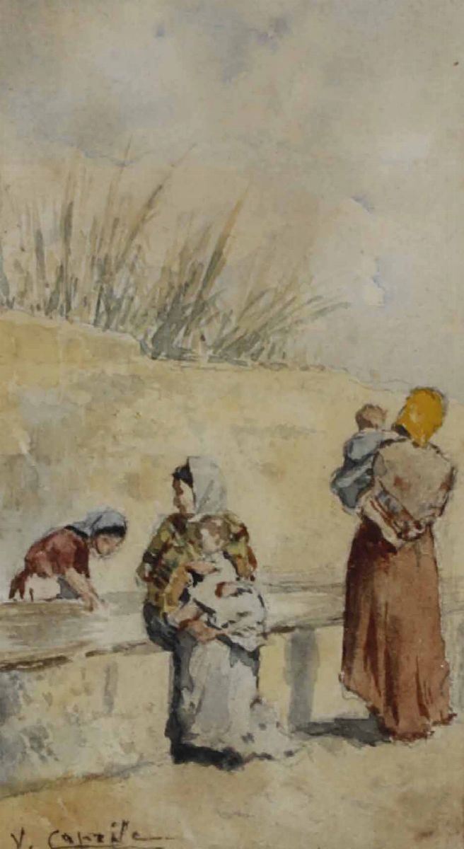 Vincenzo Caprile (1856 - 1936), attr. Donne e pescatori