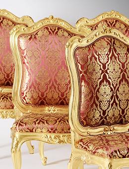 profili dorati, braccioli a ricciolo, cm 63x44x127