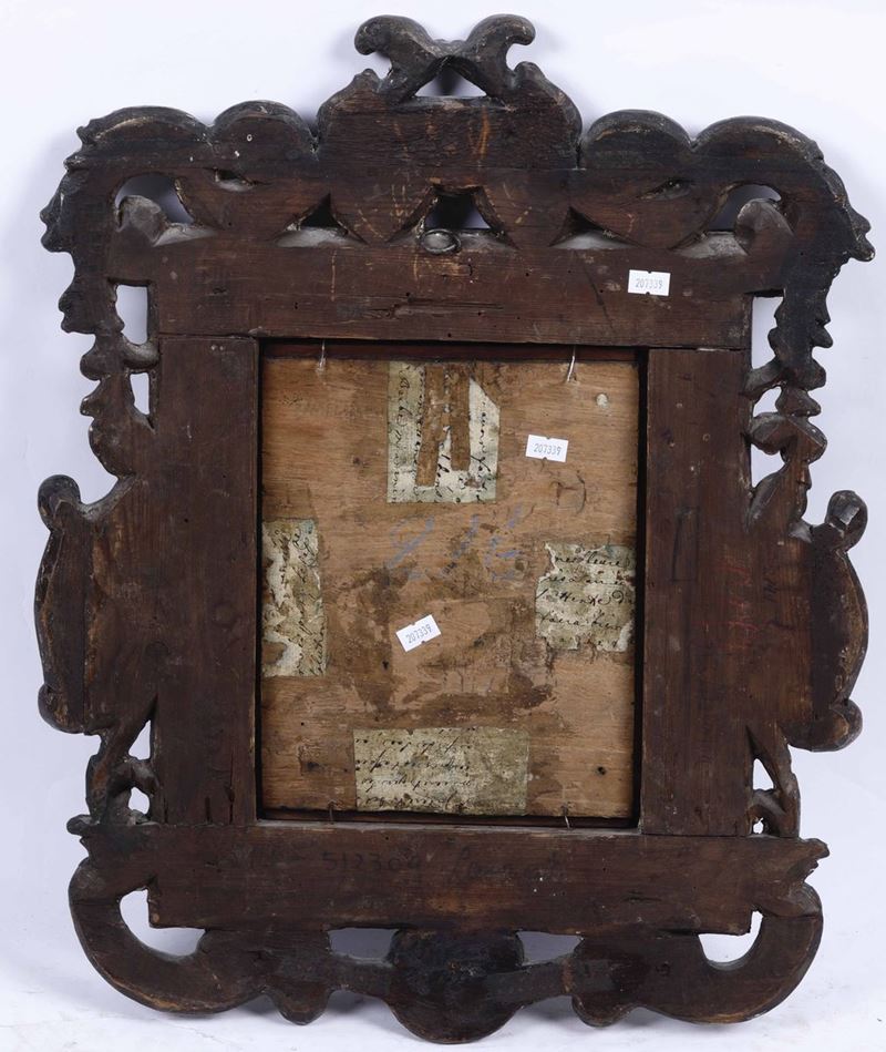 olio su tavola, cm 25x20 entro cornice in legno intagliato e laccato