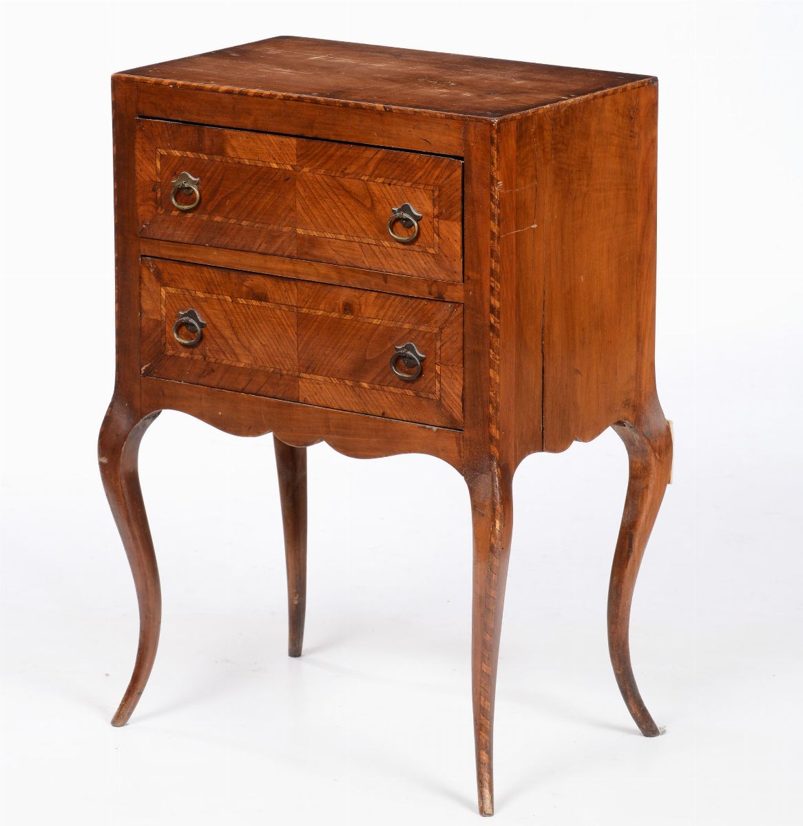 due cassetti, gambe arcuate, cm 50x30x73