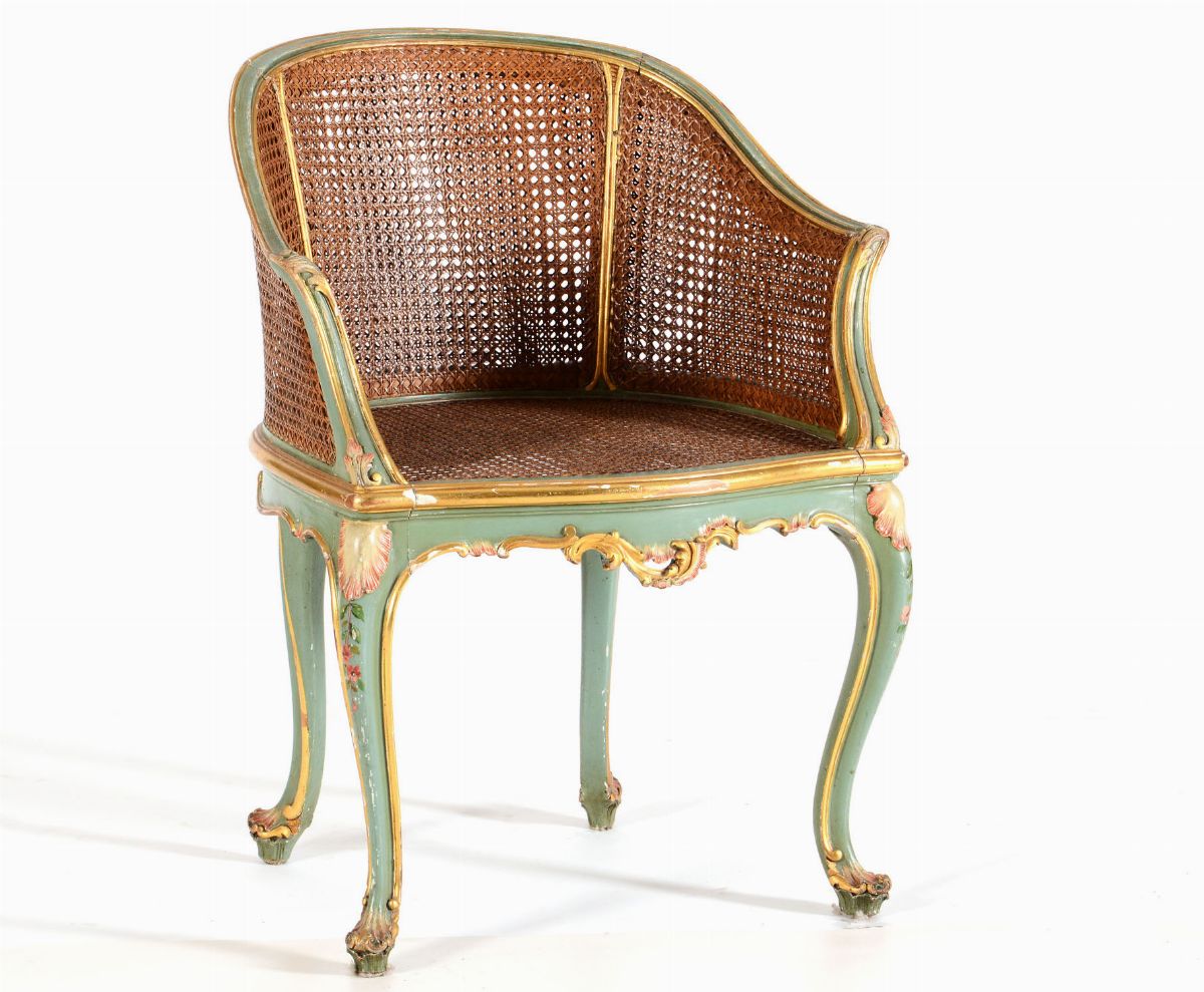 Due comodini e poltroncina in legno dipinto
