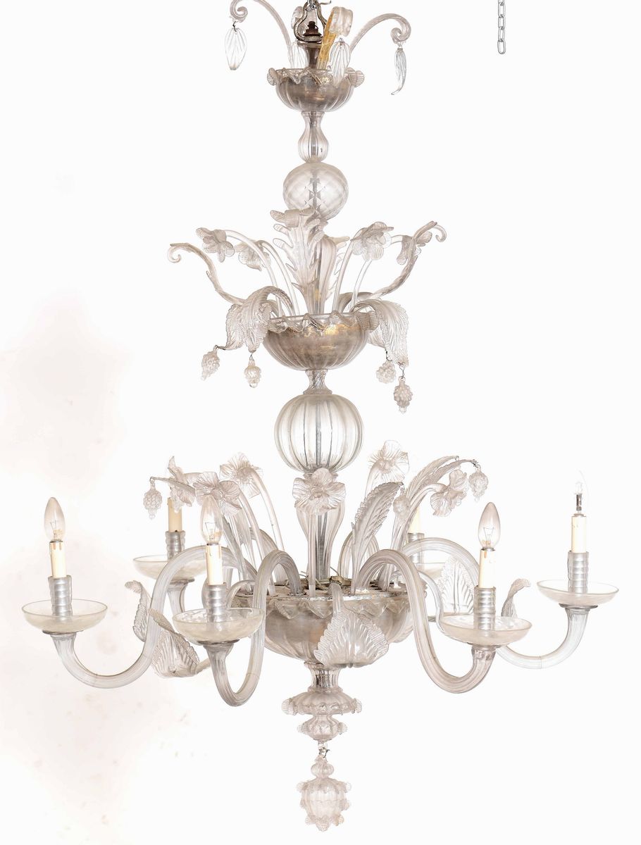 Lampadario in vetro di Murano a sei luci, XX secolo