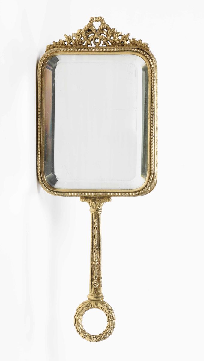 Piccolo specchio in bronzo dorato e smalti, XIX secolo