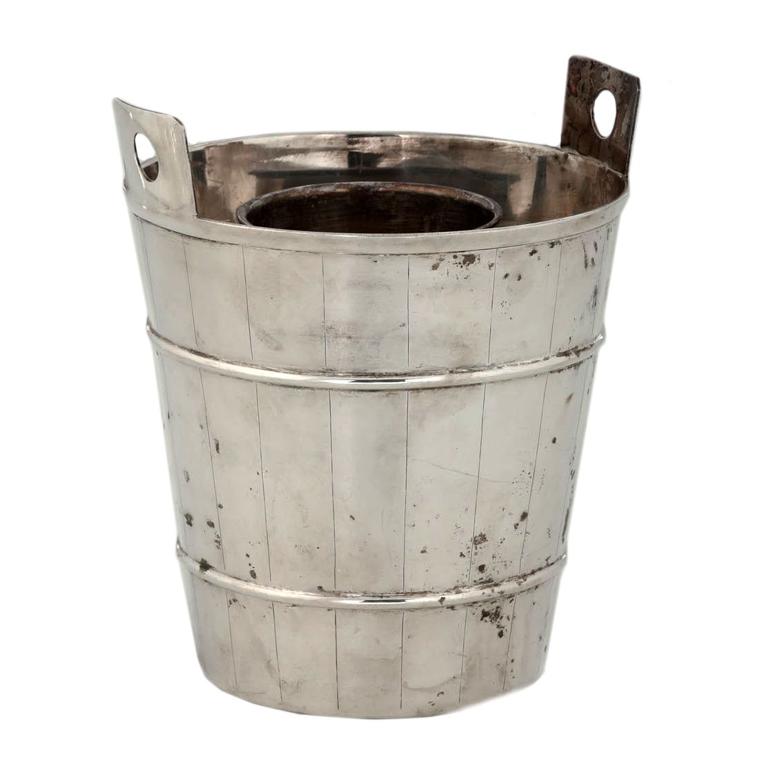 Secchiello porta bottiglie in metallo a foggia di mastello. Manifattura italiana del XX secolo