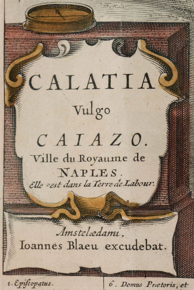 Stampa raffigurante Le ville di Napoli, incisa da Joan Blaeu e pubblicata postuma da Pierre Mortier, XVIII secolo