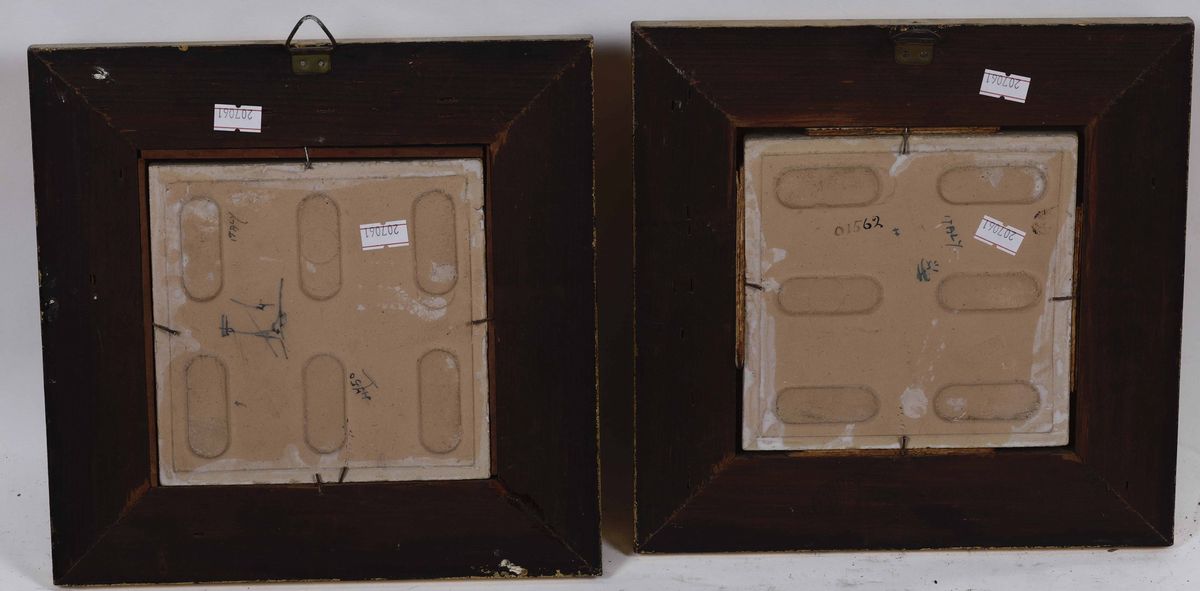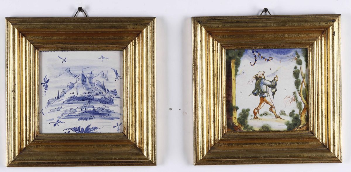 Quattro mattonelle con cornice Deruta e Savona, XX secolo