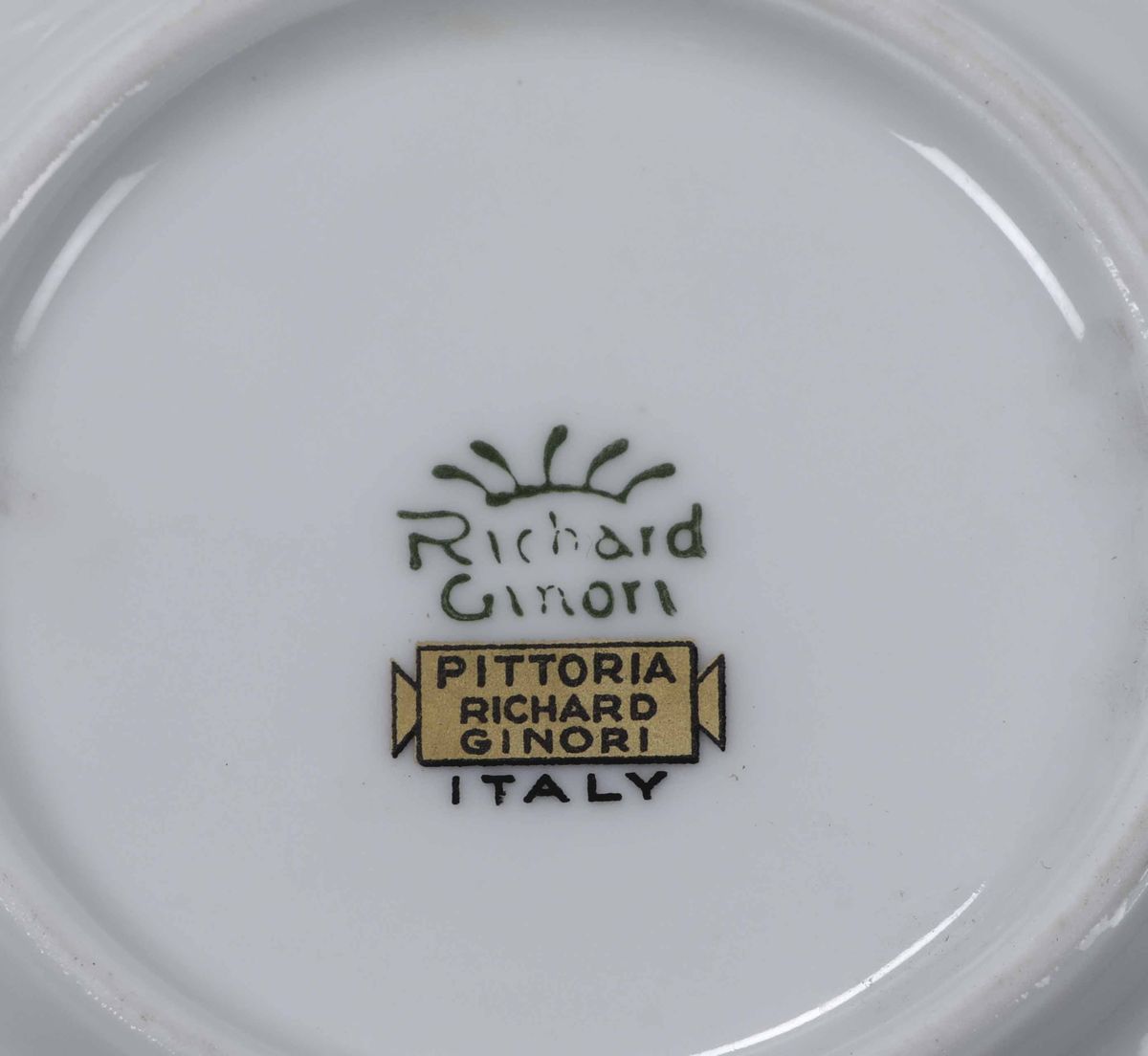 Porcellana. Marca: “Richard Ginori” con corona, in verde; simbolo grafico in oro con “Pittoria Richard Ginori”; “Italy” in nero. Buono stato di conservazione
