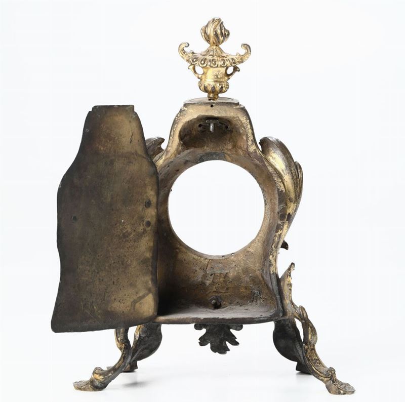 Cassa di pendola da tavolo in bronzo dorato e cesellato, XIX secolo