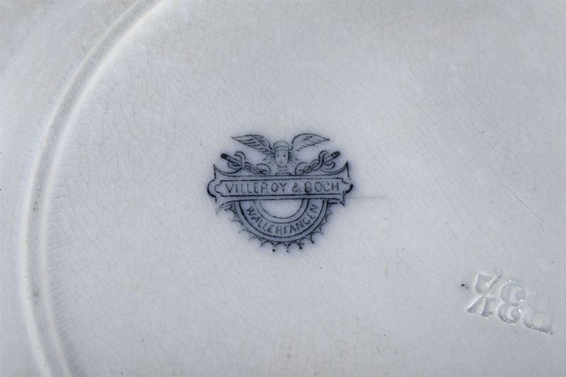 Centrotavola in metallo dorato con piatti in ceramica, XX secolo