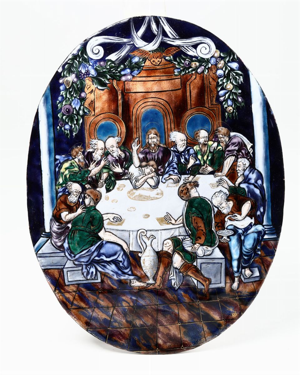 Coppia di placchette ovali raffiguranti scene religiose, Smalti su rame, XIX secolo