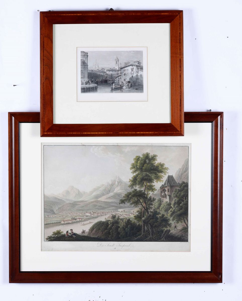 Lotto di due stampe raffiguranti Milano e Kitzbuhel
