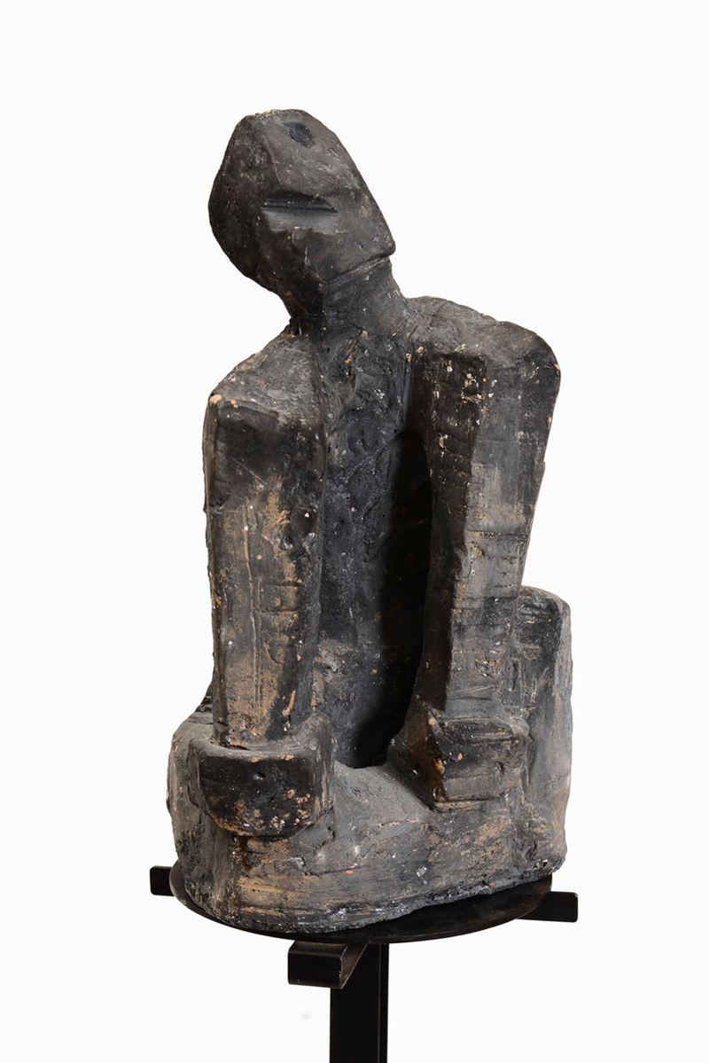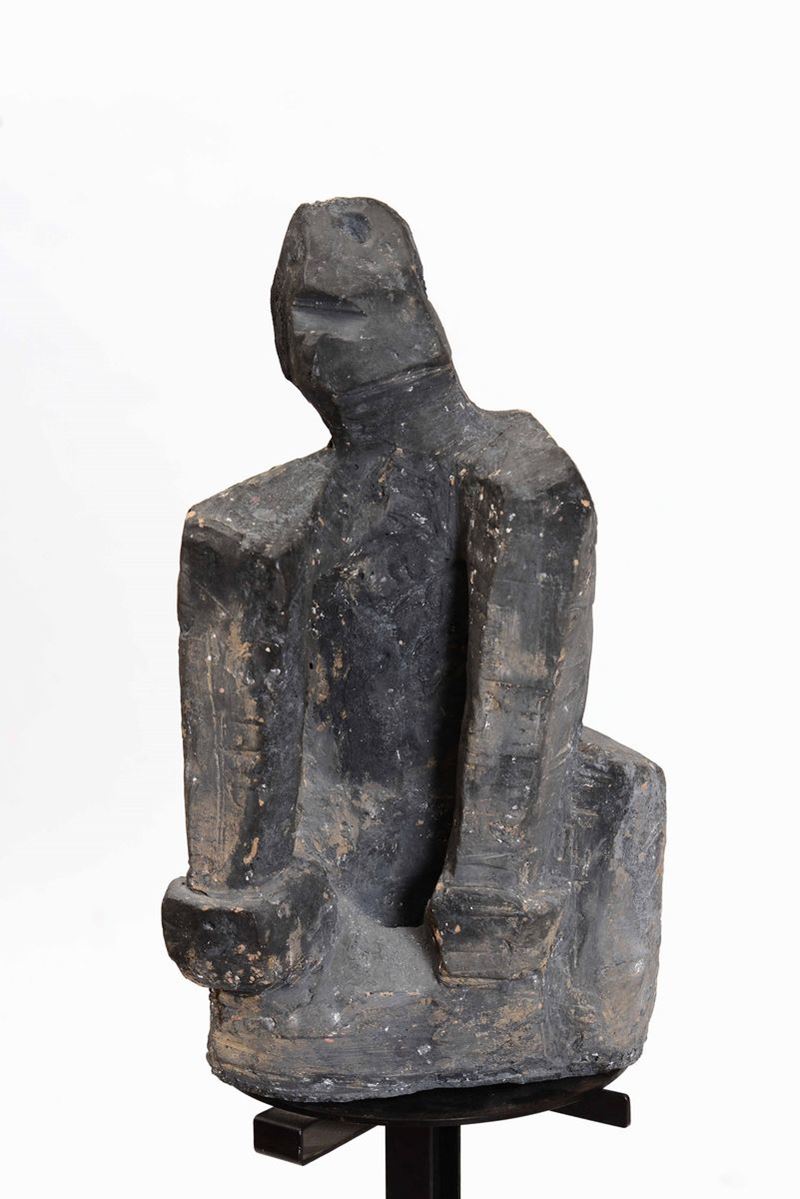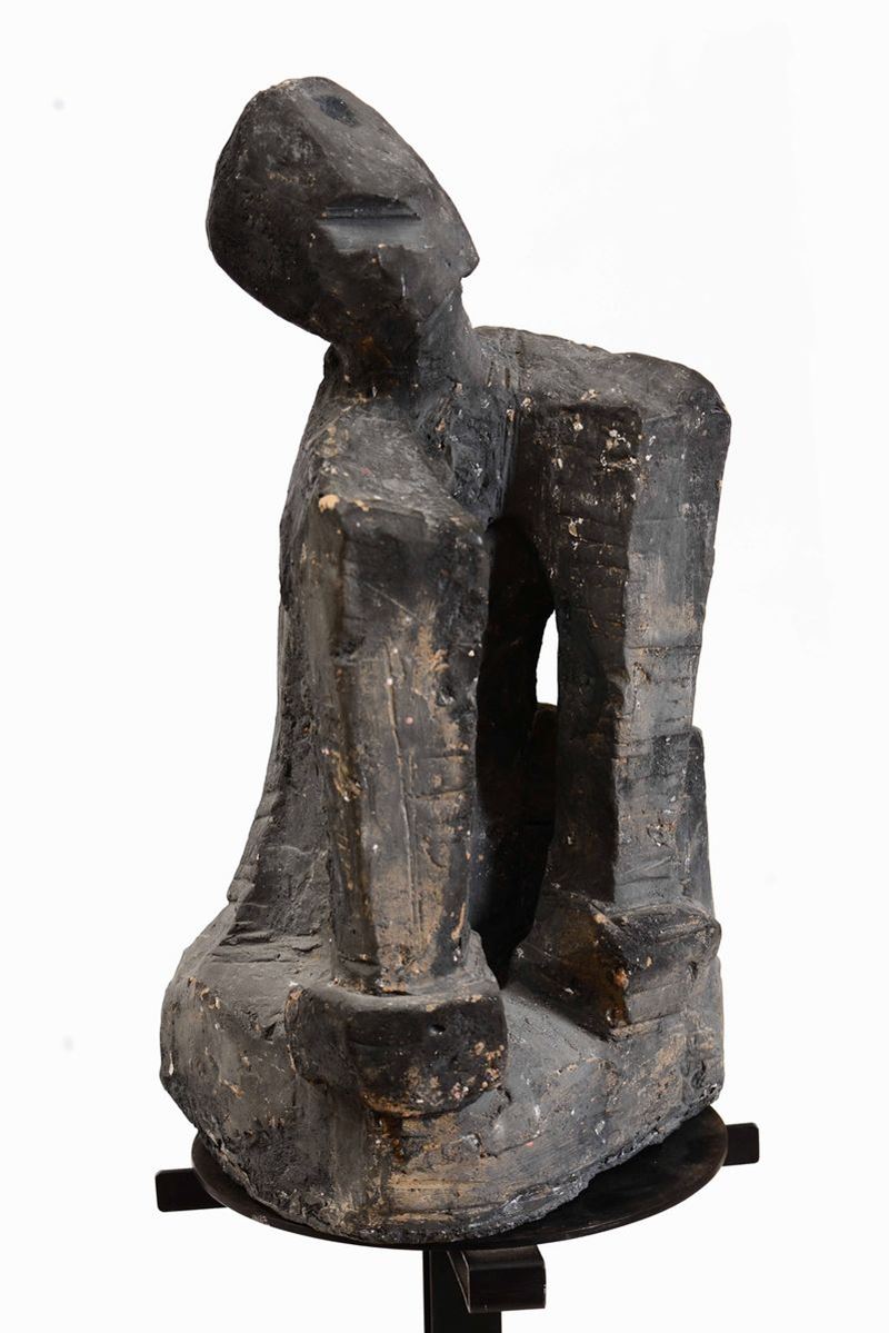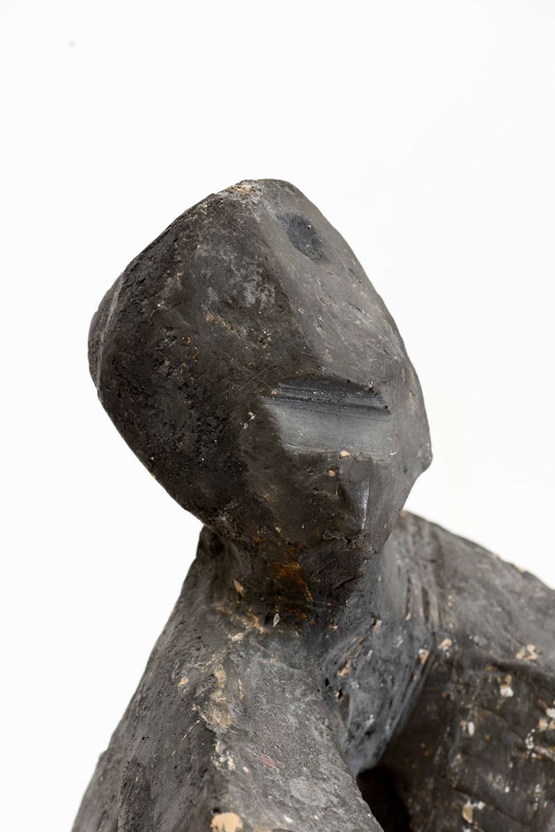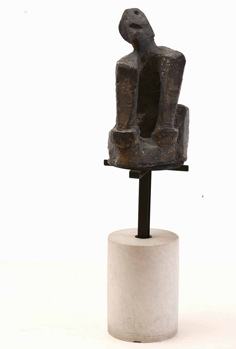 Scultura astratta in terracotta su base in marmo