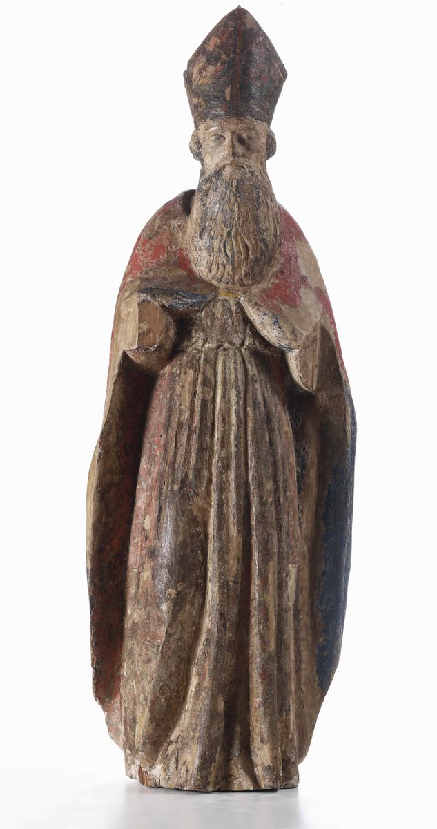 Vescovo. Scultura in legno dipinto. Scultore del XVII-XVIII secolo