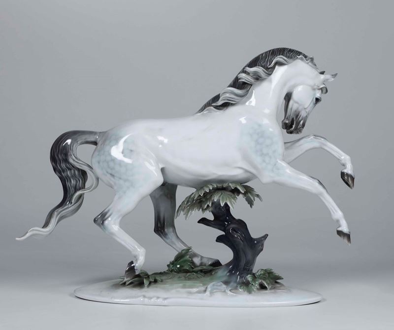 Grande scultura di cavallo Germania, Selb (Baviera), Manifattura Rosenthal, XX secolo Modello di Theodor Kärner (1884 - [..]