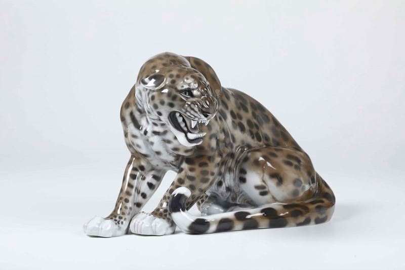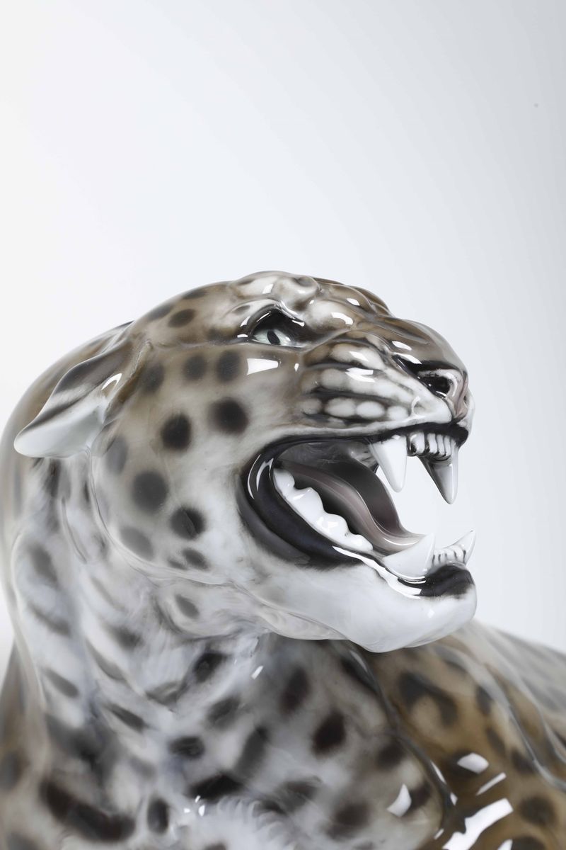 Grande scultura di Leopardo Germania, Selb (Baviera), Manifattura Rosenthal, secondo quarto del XX secolo Modello di Theodor [..]