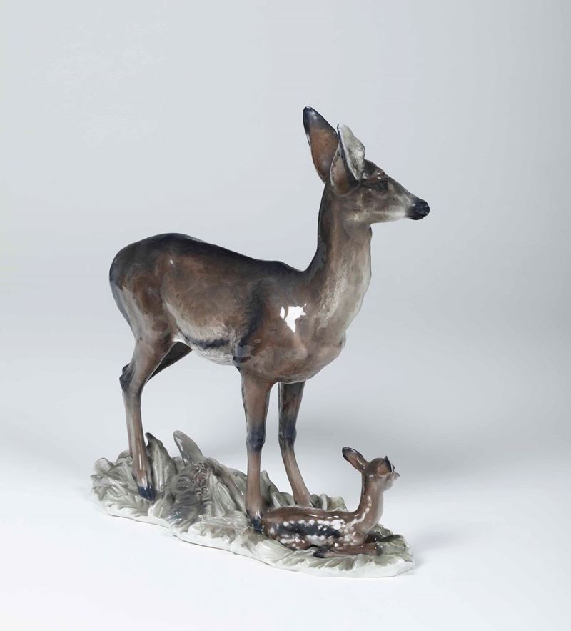 Gruppo con femmina di cervo e cerbiatto Germania, Selb (Baviera), Manifattura Rosenthal, verso la metà del XX secolo Modello [..]