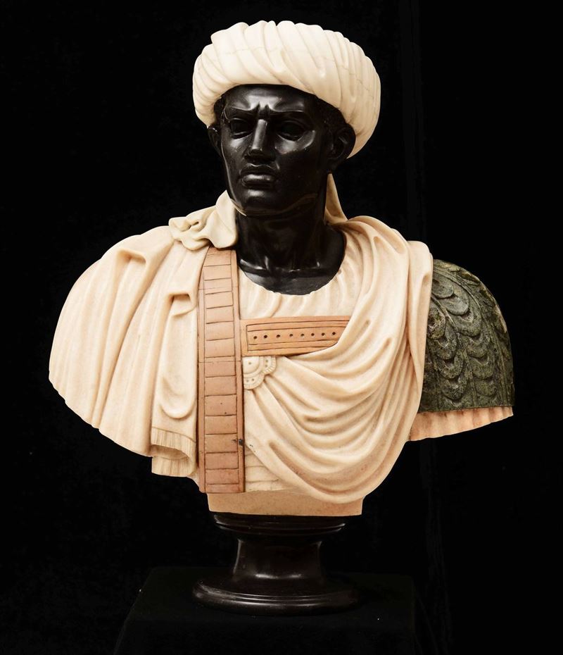 Busto di moro in marmi vari. Scultore del XX-XXI secolo