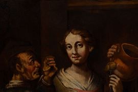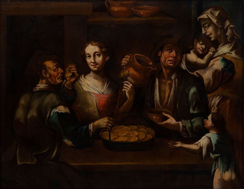 Giacomo Francesco Cipper detto il Todeschini (documentato dal 1705 al 1736), attribuito a Interno di cucina con contadini [..]