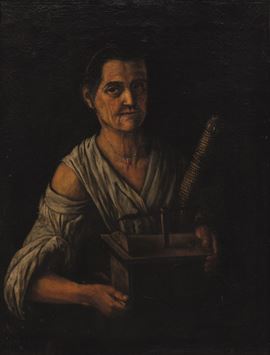 Scuola bergamasca del XVIII secolo Ritratto di donna con fuso