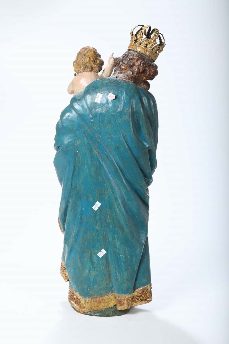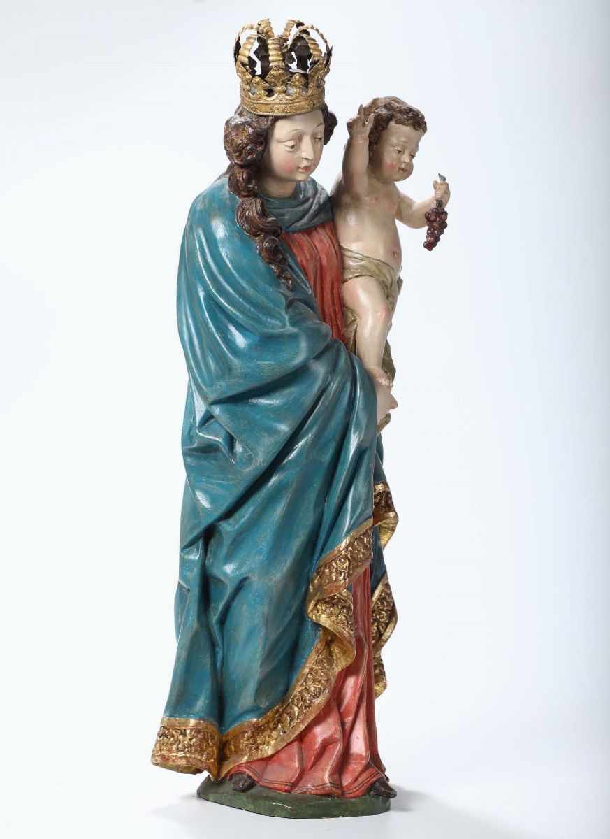 Madonna dell’uva in legno policromo e dorato nei modi dell’arte barocca, scultore d’oltralpe del XX secolo