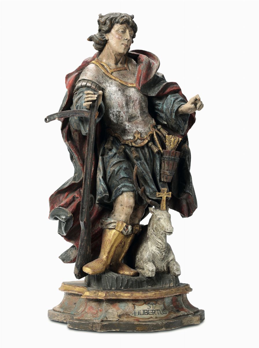 S.Uberto in legno policromo e dorato, Austria o Tirolo nello stile del XVIII secolo, XIX-XX secolo